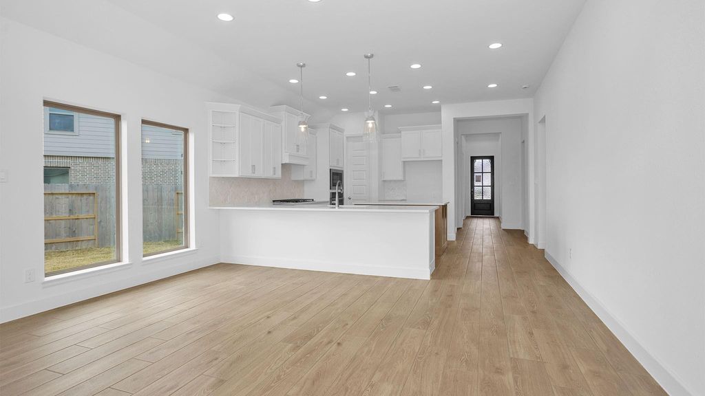 READY FOR MOVE-IN! Extended entry with 12-foot ceiling leads to open kitchen, dining area and family room with 10-foot ceilings throughout. Kitchen features center island, a 5-burner gas cooktop, and walk-in pantry. Dining area and family room feature walls of windows. Primary suite includes bedroom with 10-foot ceiling and wall of windows. Double doors lead to primary bath with dual vanities, garden tub, separate glass-enclosed shower and walk-in closet. A guest suite with private bath adds to this spacious one-story home. Covered backyard patio and a 6-zone sprinkler system. Two-car garage.