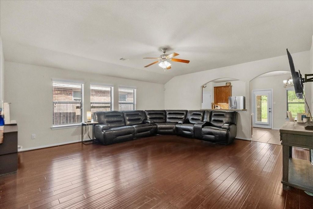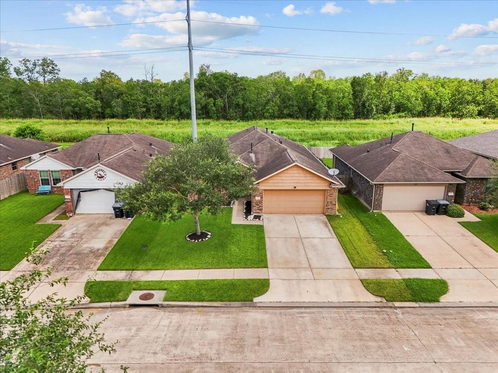 This charming home with a spacious floor plan and a versatile flex/work space room. Generously sized rooms filled with natural light and ample windows. Located in a peaceful neighborhood with no rear neighbors, a charming creek, and a storage shed in the backyard. There is a 60"ft easement that conveys with the property, it goes all the way to the creek. (It's yours)The screened-in back patio is perfect for outdoor entertaining or relaxation. The kitchen boasts plenty of counter space and cabinets, ideal for cooking and hosting guests in the open concept layout. Meticulously cared for split floor plan with a custom bar in the garage. Schedule your showing today to experience this lovely property firsthand! No MUD tax and No mandatory flood !