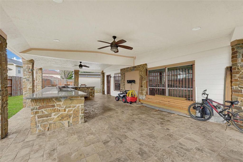 Massive built in kitchen with an extra large covered back porch! NEW ROOF INSTALLED ON 2025! 4 bedrooms and 2 and 1 half baths in the home and 1 full bath outside for the gatherings! The home also features a nice Game room and formal dining room, gas chimney, SEPARATE SHOWER in the primary The shed has a full bathroom for the gatherings! Solid wood flooring! Solid wood kitchen cabinets! bedroom Very peaceful cul de sac Not in FZ