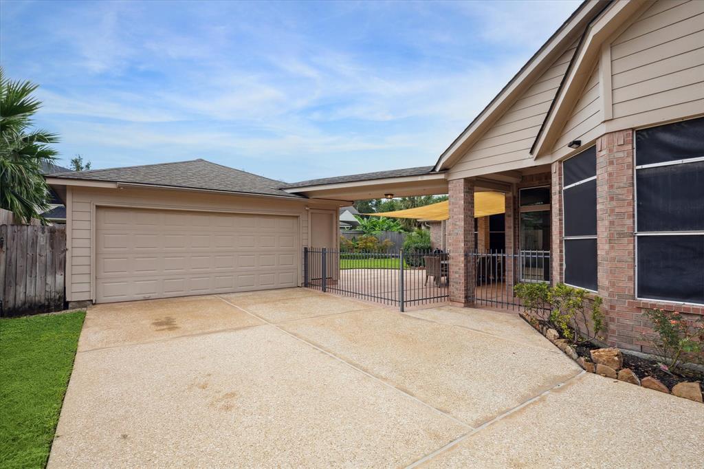 ONE STORY VILLAGE BUILDERS 4/2.5/2+ SPLIT PLAN BEAUTY WITH HIGH CEILINGS, TILE, BAMBOO, AND LAMINATE FLOORING - UPDATED MAIN BATH, NICELY LANDSCAPED BACK YARD WITH EXTENDED TILE PATIO, PLANTATION SHUTTERS IN FRONT OF HOME, WINDOWS COATED WITH SCOTCHGUARD SOLAR X S35 ULTRA SAFETY FILM, WHOLE YARD SPRINKLER SYSTEM, ROLLAC ELECTRIC FRONT & REAR DOOR SAFETY SHUTTERS, SPRAY IN RADIANT BARRIER, 17 X 8 AIR CONDITIONED STORAGE ROOM IN ATTIC, ELECTRIC LIFT (DUMBWAITER) TO ATTIC STORAGE, CARPET REPLACED 2024, ZONED HVAC (MAIN HOUSE AND MAIN BEDROOM AND ADJACENT BEDROM) - 5' EXTENSION AT BACK OF GARAGE WITH EXTRA MAN DOOR. FIRST LIEN FHA AT 2.75% MAY BE ASSUMABLE.