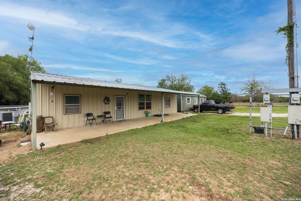 Unrestricted 1.68-acre barndominium compound in Atascosa with no HOA and located entirely outside of any floodplain. This fully fenced and gated homestead offers exceptional privacy and features a barndominium with a metal roof, a large above-ground pool, and an expansive entertaining deck. A standout feature is the massive detached metal workshop, which comes fully equipped with hardwired shop equipment that conveys with the sale. The property is engineered for maximum utility with two separate electric meters, two independent septic systems, and a complete second set of hookups ready for an RV, guest house, or additional dwelling. Additional storage is provided by multiple outbuildings situated throughout the grounds. Sold As-Is, this property provides significant pre-existing infrastructure perfect for tradespeople, hobbyists, or multi-generational living.