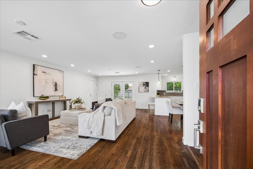 Charming single-story home on a quiet street in desirable Timbergrove. Wonderful floor plan with 3 bedrooms and open concept living. Updates include: roof, electrical panel, PEX plumbing, under-slab plumbing, HVAC, and a complete interior remodel of the kitchen and both bathrooms. Beautiful hardwood floors, recessed lighting, and surround sound add to the home’s appeal. The updated kitchen features quartz countertops, custom cabinetry, gas range, stainless appliances, and a peninsula with seating, opening to the main living areas for easy everyday living and entertaining. The hall bathroom has Quartz countertops, white subway tile, designer lighting, custom vanity and framed mirror. French doors off the family room lead to a large backyard with patio, while the double-wide driveway adds convenience and curb appeal. This great neighborhood is ideally located close to town and major thoroughfares.