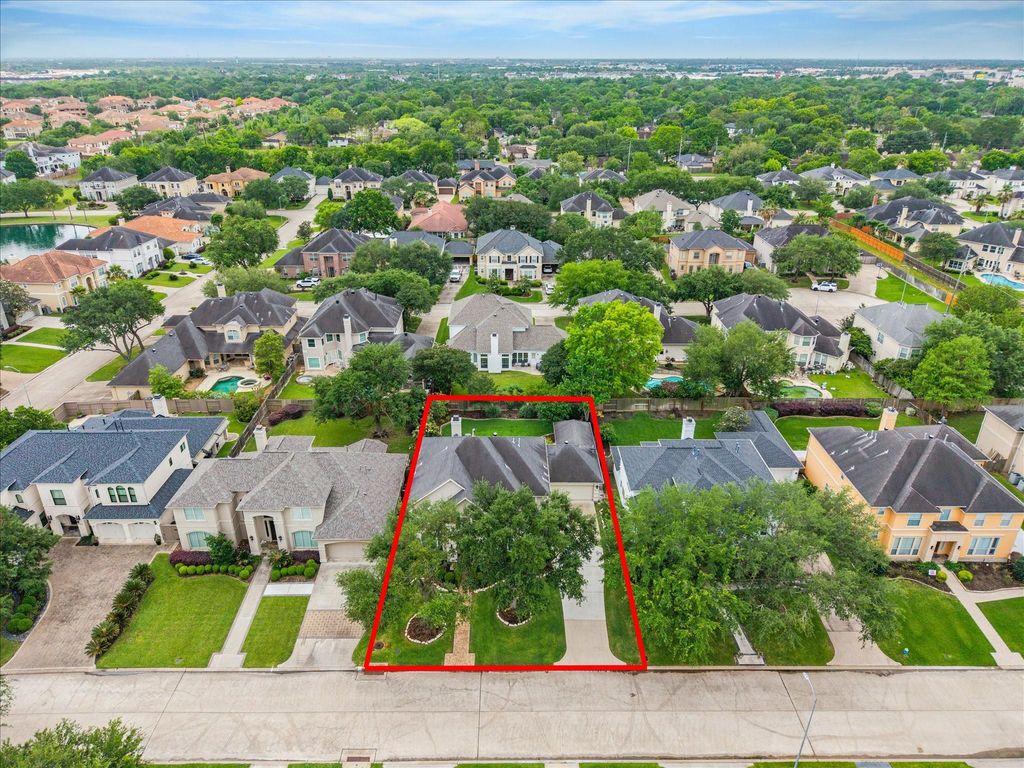 Marvelous 5-bedroom home nestled on a tranquil cul-de-sac in the Magnificent manned-gated Lakes of Parkway. Exceptional open layout with abundant natural light designed for today's modern, effortless living. Meticulously maintained home boasts a double-height foyer that opens to the main living room with views to the vast private backyard. The formal dining offers charming views of the front yard & convenient access to the remodeled Gourmet Kitchen, featuring top-tier appliances. The kitchen opens to the breakfast area, both overlooking the lush, serene backyard & vaulted-ceiling veranda with summer kitchen featuring high-performance appliances, perfect for BBQs & Entertaining. The first-floor primary suite offers a private spa retreat, 2nd level features four generously sized bedrooms, two baths & game room. Notable it offers a whole-house generator, mosquito-spray system, plus a 3-car garage. Residents enjoy scenic walking trails, a pool, tennis courts, kids' play area and clubhouse.