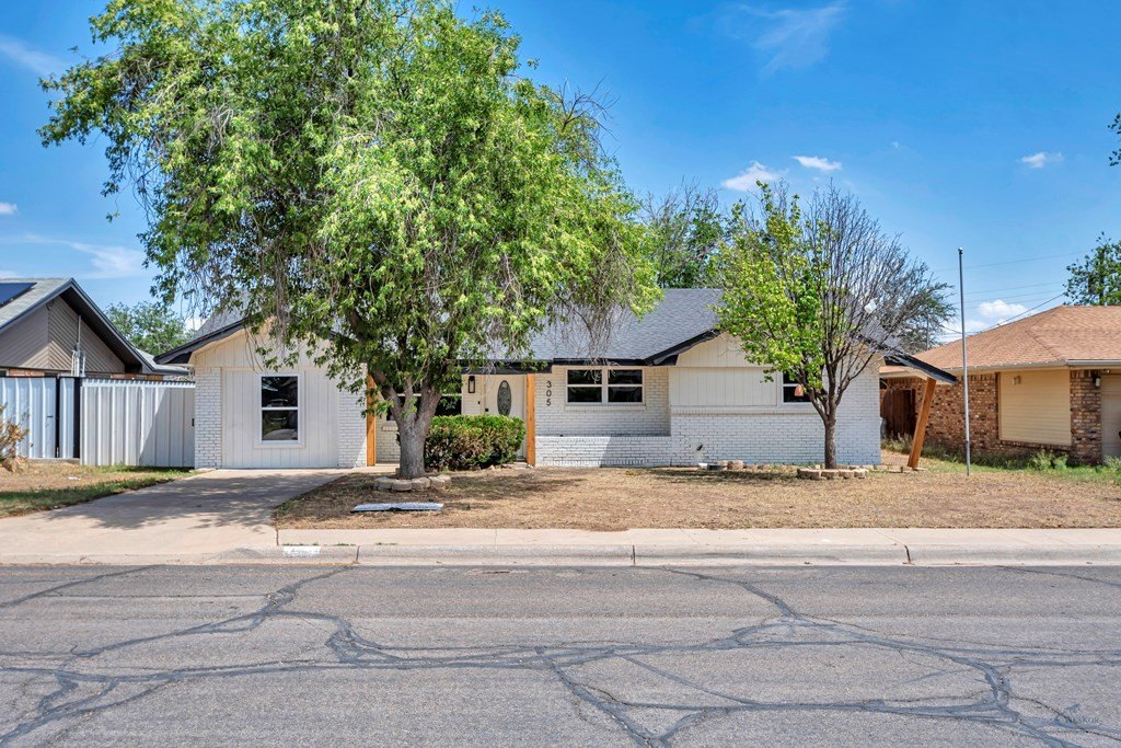Pretty 3 bed / 2 bath home with a functional, open-concept layout! Features include a spacious living area, private laundry room, and an open kitchen with ample cabinet space. Bedrooms are generously sized with great closets. Beautiful updates throughout, including modern fixtures, appliances, tile, countertops, and vanities. Additional highlights include 5-panel doors and newer windows for a clean, elevated look. Enjoy the backyard with a covered patio and two storage buildings-great for extra space and flexibility! New sewer line + updated plumbing! New roof! Great neighborhood!