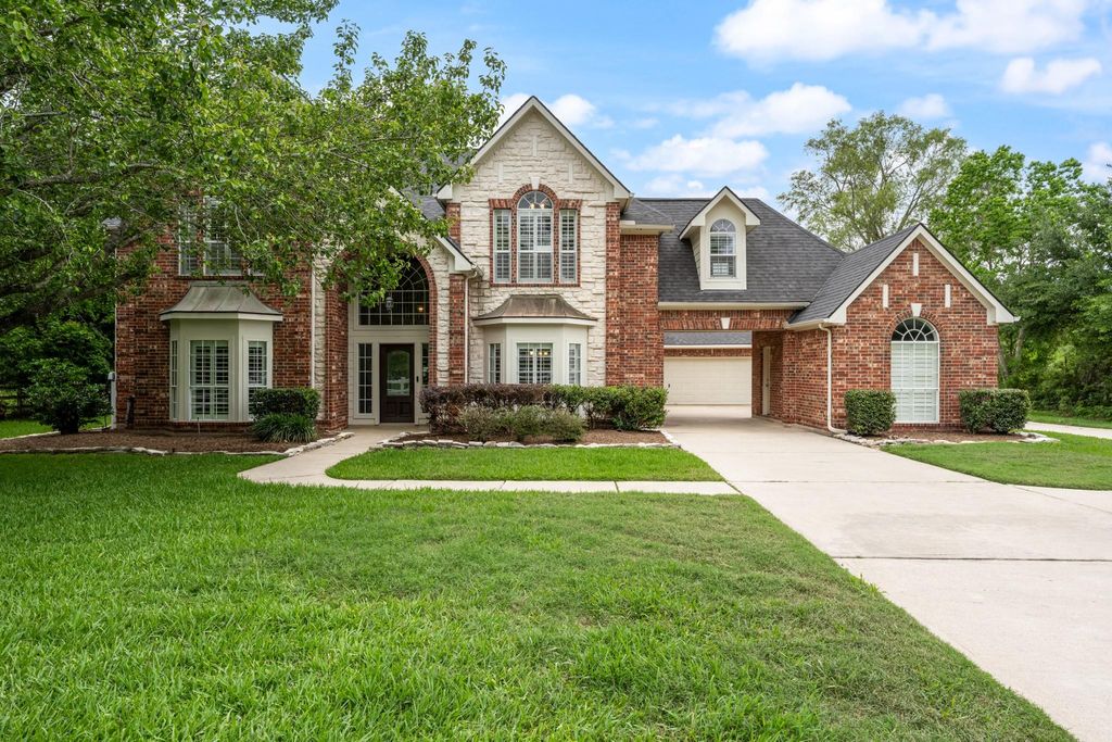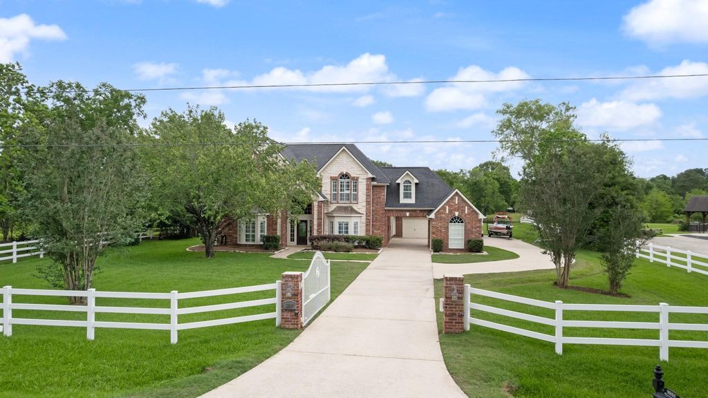 POOL AND SPA!! WATER FRONT!! NEW CARPET!! Nestled on a sprawling 1.5-acre lot in the prestigious gated community of Thousand Oaks, this stunning 5-bedroom, 3.5-bathroom estate offers a perfect blend of resort-style luxury and country tranquility. The home spans 4,445 square feet and makes a grand impression from the start with a gated circular driveway and a striking brick-and-stone exterior. Inside, the masterfully redesigned kitchen serves as the heart of the home, featuring premium granite countertops, high-end stainless steel appliances, and a charming copper sink. The open layout flows seamlessly through two staircases into spacious living areas, including a private study and an upstairs game room.Features include new carpet, fresh paint, remodeled secondary bathrooms, shutters, pool with hot tub, lake front, circle drive and custom secondary bunkbed. The outdoor space is a true private oasis, boasting a fabulous pool and spa set against a backdrop of serene lake views.