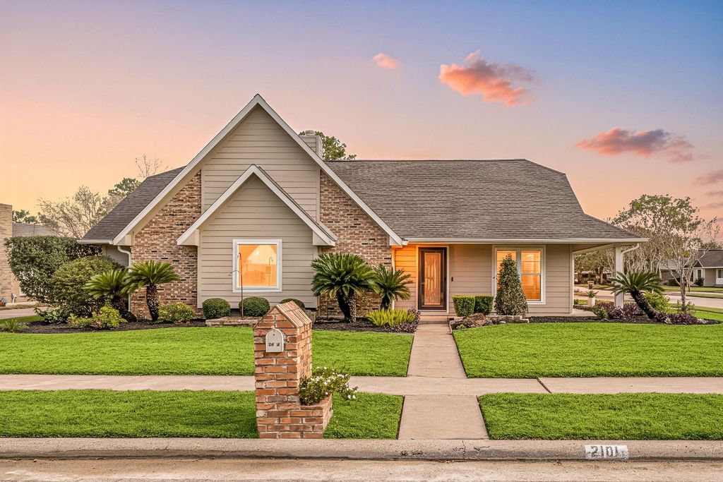 Beautifully updated sanctuary in the heart of Pearland that perfectly balances luxury with classic charm. Ideally situated on a corner lot with rapid access to 518, Dixie Farm Rd., and I-45, this home offers an effortless commute in a peaceful, established neighborhood. The wrap-around covered front porch and manicured landscaping set an inviting tone. The totally redone kitchen is complete with granite counters & custom cabinetry. Designed for the modern entertainer, featuring a large media room, den and a spectacular covered back patio with an outdoor kitchen. The primary suite is a true retreat, offering two walk-in closets and a spa-like bathroom with a pebble-floored shower, rain-style head, and body jets. Built for longevity and peace of mind, the property features a Generac generator, a 2015 roof, Hardie exterior siding and high-efficiency HVAC with replaced ductwork. Bonus features include a double-car garage with its own window AC, a backyard shed, and a full sprinkler system.