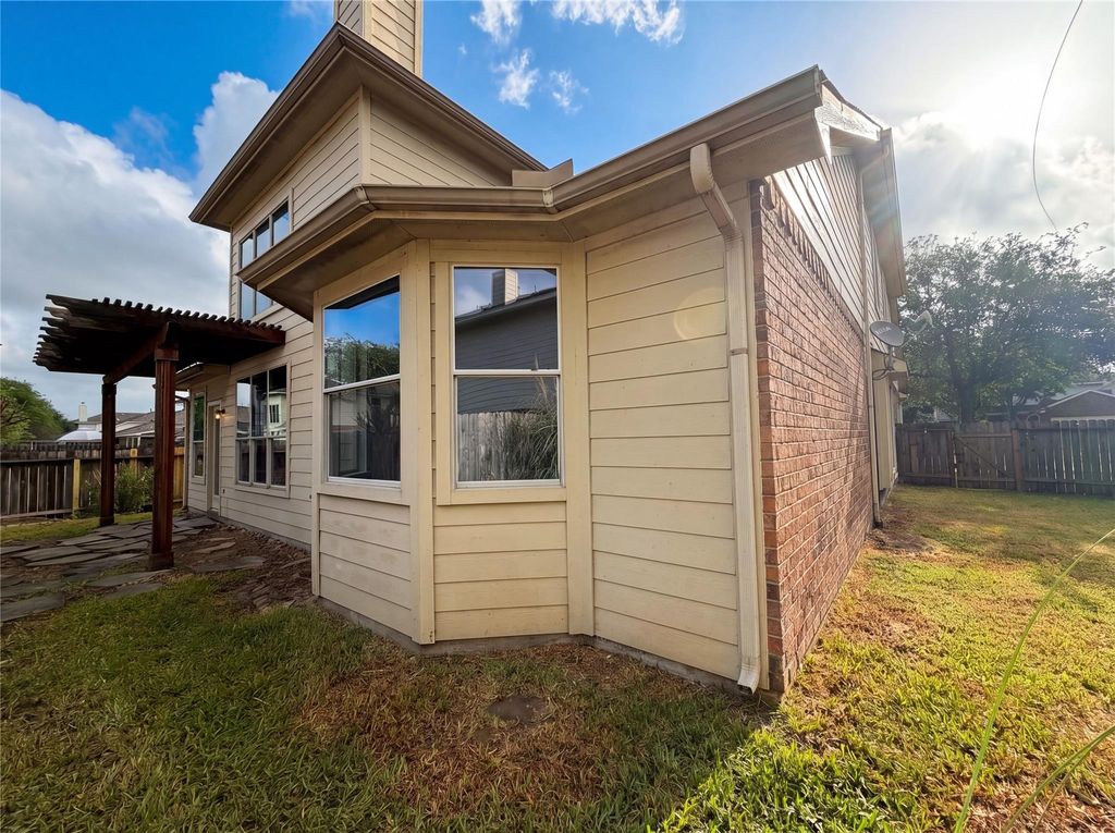 Imagine 9615 Beckwood Post Dr, updated with fresh interior paint and partial flooring replacement. A fireplace provides comfort. The kitchen includes an accent backsplash and stainless steel appliances. The primary bedroom has a walk in closet; its bathroom contains double sinks and a separate tub/shower combination. An exterior patio is present. Modern updates and practical features await. This home has been virtually staged to illustrate its potential.. Included 100-Day Home Warranty with buyer activation