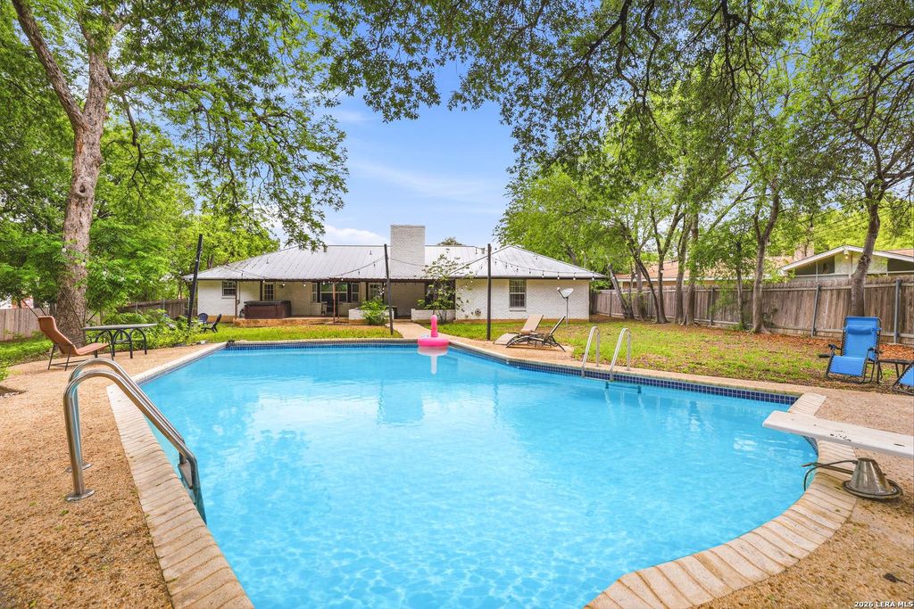 Welcome to this beautifully refreshed corner-lot residence in the heart of San Antonio, where thoughtful updates meet effortless comfort. Designed with both elegance and livability in mind, the home features multiple spacious living areas, allowing for seamless entertaining and everyday ease. Updated fixtures throughout add a refined, modern touch while maintaining a warm, inviting atmosphere. Step outside to your private backyard retreat, complete with a sparkling in-ground pool and diving board, perfect for elevated outdoor living, weekend gatherings, and serene evenings under the Texas sky. The generous corner lot enhances both privacy and curb appeal, creating a true sense of space and presence. Whether you're seeking a primary residence, a second home, or a high-potential investment, this property offers a rare blend of versatility and lifestyle. Experience it in person, schedule your private showing today. Spa/hot tub is not included in the sale. Hot tub and furnishings nego