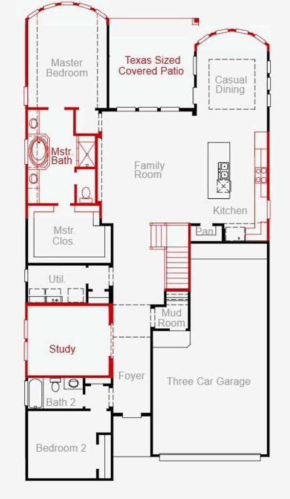 Experience sophistication in this stunning two story residence featuring four bedrooms and three bathrooms plus a three car garage. A welcoming foyer leads you into a bright great room and a gourmet kitchen equipped with stainless steel appliances and a large island. The main floor includes a private study and two spacious bedrooms which are perfect for guests or multi generational needs. High ceilings throughout create a grand and airy atmosphere while the primary suite offers beautiful bowed windows that flood the room with light. Step outside to a massive Texas size covered patio designed for relaxing or entertaining year round. With energy efficient features and a seamless blend of modern luxury and daily functionality this property provides everything you need. Schedule your tour today!