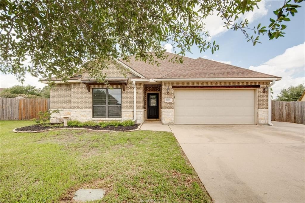 Beautiful 4-bedroom, 3-bath home featuring an open-concept layout and desirable split-bedroom floor plan. Enjoy all-new laminate wood-look flooring throughout the entire home for a clean, modern feel. The kitchen offers granite countertops, knotty alder cabinetry, stainless steel appliances, and a large pantry-perfect for everyday living and entertaining. The spacious primary suite includes a well-appointed bath with a separate shower, soaking tub, and a large walk-in closet. One secondary bedroom features its own en suite bath, ideal for guests or multi-generational living. Additional highlights include wiring for a security system, a covered patio, sprinkler system, and mature trees, all situated on a large cul-de-sac lot. Conveniently located just one block from the Texas A&M University bus stop, approximately 10 minutes to Kyle Field, and only minutes from shopping and dining.
