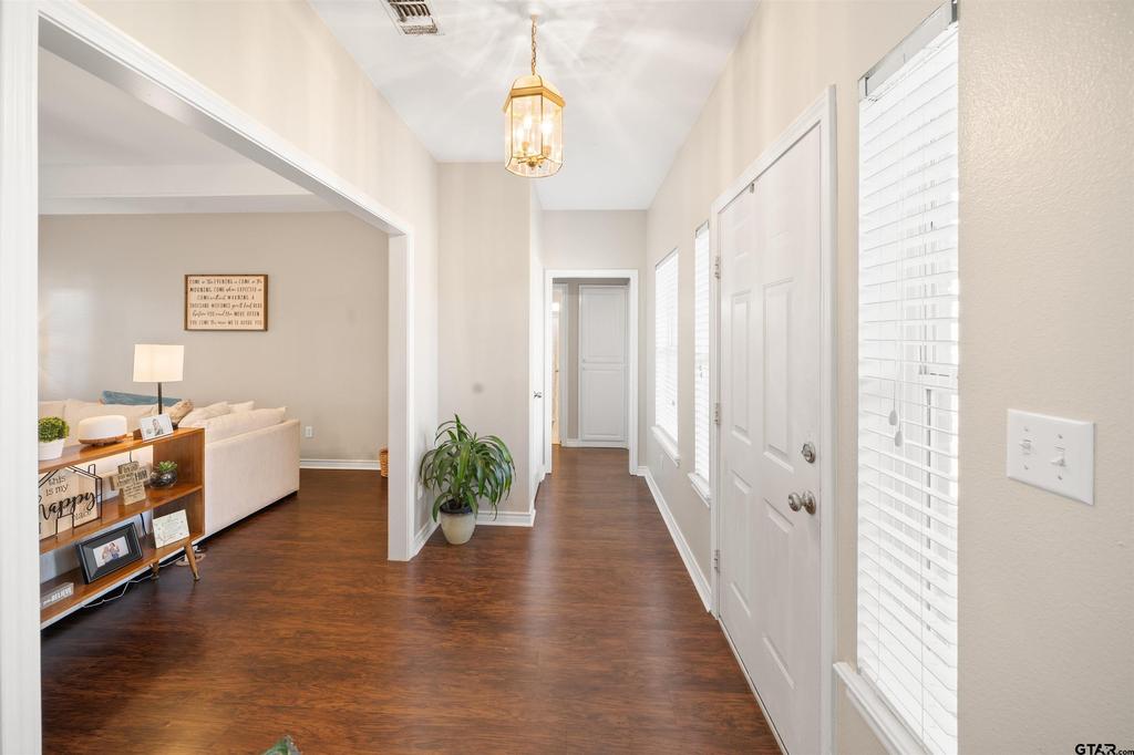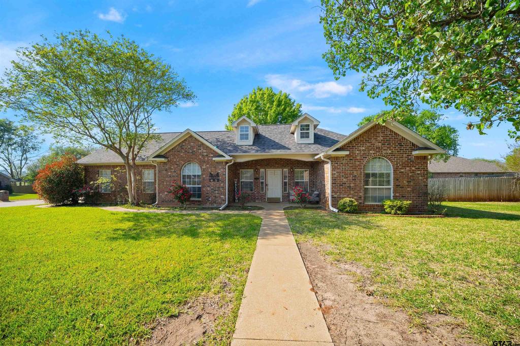 Welcome to this move in ready gem in the heart of Legacy Estates, zoned to highly sought after Bullard ISD! This 3 bedroom, 2 bath home with a spacious bonus room offers the perfect blend of comfort, functionality, and charm. Step inside to find a warm and inviting living space featuring rich wood floors, a cozy brick fireplace, and an easy flow into the kitchen, ideal for both everyday living and entertaining. The kitchen is light and bright with granite countertops, stainless steel appliances, ample cabinetry, and a breakfast area overlooking the spacious backyard. The primary suite is generously sized with a tray ceiling, large windows for natural light, and an en suite bath complete with dual vanities, a soaking tub, and a separate shower and walk in closet. Two additional bedrooms are well sized and share a beautifully updated bathroom. Upstairs, the large bonus room provides endless possibilities including a game room, office, media space, or even a fourth bedroom. Outside, enjoy a spacious backyard with mature trees and a covered patio perfect for relaxing or hosting, complete with string lighting and plenty of room to unwind. Situated in an established neighborhood with a convenient location to South Tyler amenities and all the Bullard has to offer, this home truly checks all the boxes. Don't miss your chance to make it yours!
