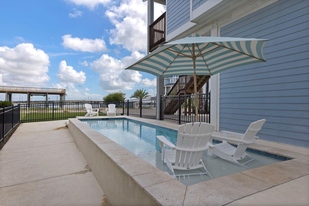 This stunning Tiki Island bayfront home that is loaded with coastal charm! A spacious living room featuring vaulted ceilings and tile flooring that flows throughout the main living areas. The kitchen showcases crisp white cabinetry, granite countertops, and breakfast bar that opens to the family room. This floor plan includes two primary suites, plus two additional secondary bedrooms to accommodate family or guests. Outside discover a private oasis featuring a pool and dock complete with a boat lift, creating the perfect setup for fishing enthusiasts. Upgrades include turf yard with putting green, hurricane shutters over exterior doors, new cooktop and microwave, fish cleaning station, storage room, cargo lift. Tiki island is a hidden gem on a tiny peninsula in Jones Bay offering ideal setting for those seeking a relaxed coastal lifestyle while maintaining convenient access to everyday necessities. Home is being sold fully furnished.