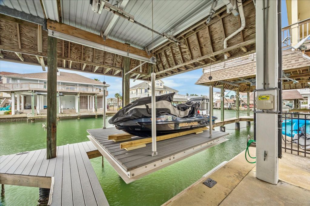 Canal home coming furnished ,situated perfectly to catch lots of fish off the dock. Wonderful storage and huge laundry room. Generator outlets in the garage can run the house except for HVAC. Hot Tub remains, outside bar area with a cargo lift off upper kitchen deck to downstairs cooking area! Fence in for your animals!
