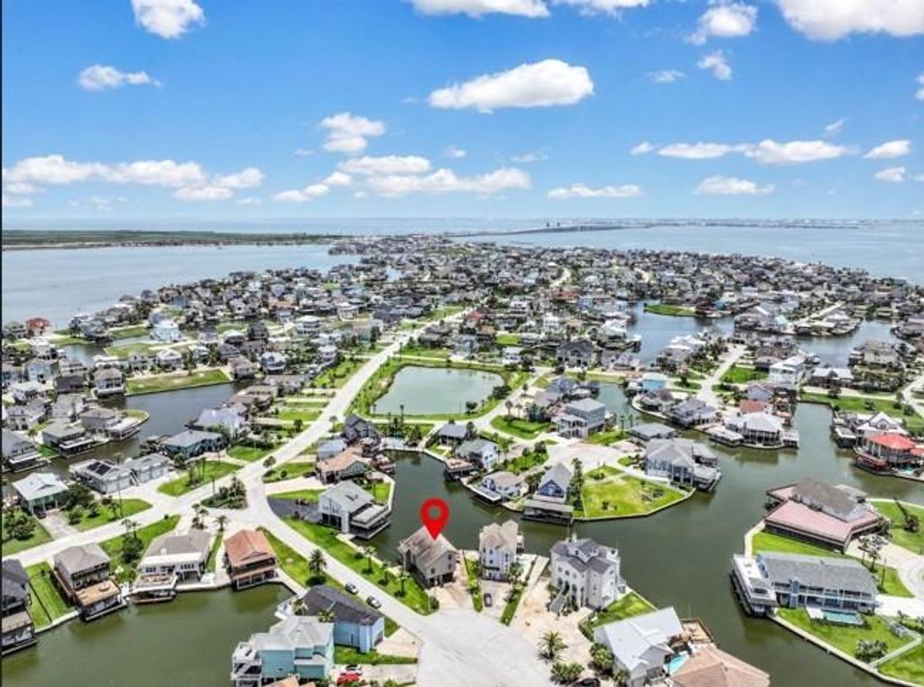 Discover the ultimate coastal lifestyle with this charming home perfectly situated on a corner cul-de-sac lot with backyard water access. Inside, is a cozy living room featuring a striking rock fireplace, custom built-in cabinetry, and an abundance of natural light. The dining room is ideal for gatherings and entertaining. The kitchen boasts rich oak cabinets and a pantry, offering both style and functionality. The primary suite is complete with an en-suite bathroom plus its own private balcony overlooking the water- perfect for morning coffee or sunset views. Two secondary bedrooms and an additional flex space provide plenty of room for guests, or an office. Concerned about stairs? This home is equipped with an elevator! Outside, enjoy a massive deck ideal for relaxing, a private boat dock with boat lift, and storage. Just minutes from the island's restaurants, shopping, beach access, and easy connections to the city. Live the waterfront lifestyle you've dreamed of on Tiki Island!