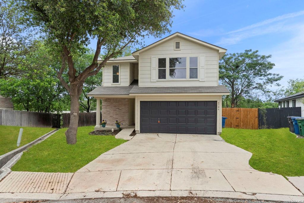 6706 Dragon Fire is listed for sale at $ 205,000. The Single-Family property has 3 bedrooms, 2 Full Bathrooms, 1 Half Bathroom, 1530 square feet and was built in 2005. The lot size is 0 Square feet. ##BR##Spacious 2-story home in Lackland Heights offering a functional layout, mature trees, and a prime west San Antonio location near Lackland AFB. This 3 bed, 2.5 bath home with 1,530 sqft features an open main level with living and dining areas, wood-look flooring, and direct access to the backyard for easy indoor-outdoor flow, plus a dedicated game room perfect for additional living or entertaining space. The kitchen includes ample cabinet storage, pantry space, and a bright dining area with natural light. All bedrooms are located upstairs, including the primary suite with a private ensuite bath and walk-in closet, while secondary bedrooms share a full bath and offer flexibility for guests or a home office. Interior features include updated light fixtures, ceiling fans, and neutral tones throughout. Exterior highlights include an attached 2-car garage, covered front entry, and a spacious fenced backyard with mature trees and patio space for relaxing or entertaining. Conveniently located