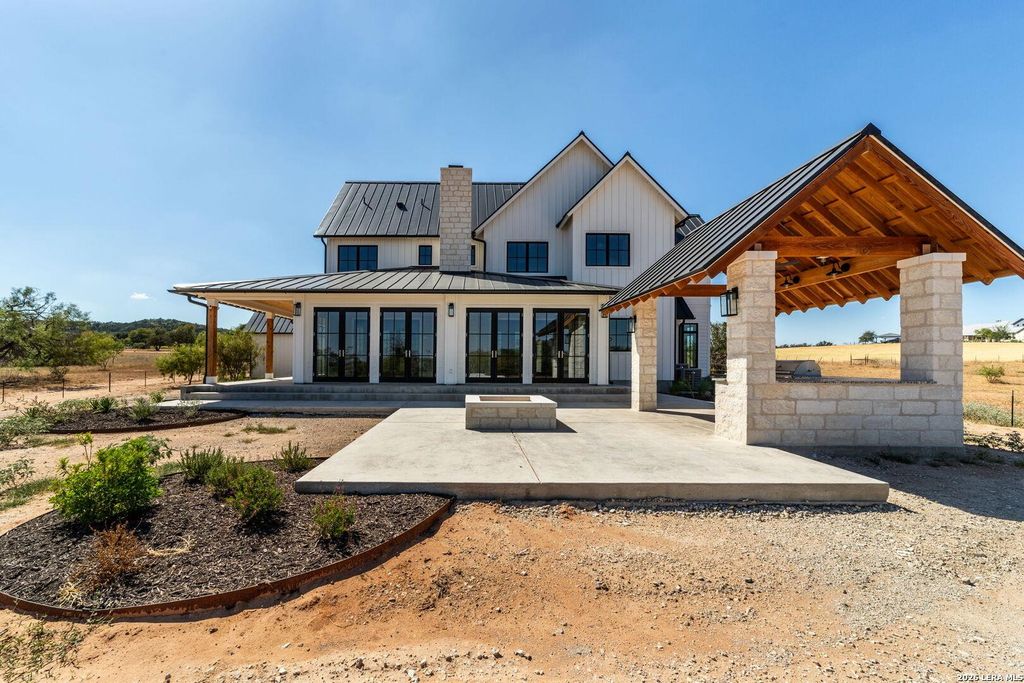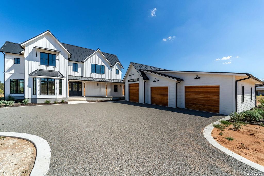 Located less than a mile from Fredericksburg, this custom modern farmhouse on 5.75 acres features a 40 GPM well, climate-controlled sunroom, outdoor kitchen, and high-end finishes throughout. Completed in 2023 by Tandem Building Corp, this thoughtfully designed home offers quality craftsmanship, privacy, and convenience. The property features a 40 GPM water well and maintains an AG exemption, helping keep property taxes low. The home is designed with all bedrooms located on the second floor, including the primary suite, two guest bedrooms, and the laundry room. The main level is dedicated to living and entertaining, featuring a spacious living room, kitchen, formal dining room, and sunroom. The custom kitchen is beautifully appointed with high-end stainless steel appliances, including a large built-in refrigerator and wine fridge combination, along with ample cabinetry and workspace. Just off the kitchen, the living room offers a warm and inviting atmosphere with a cozy fireplace and F