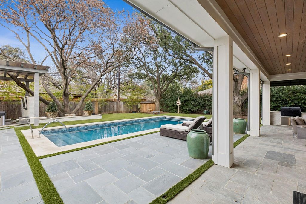 This timeless, meticulously maintained home offers an exceptional blend of quality craftsmanship, thoughtful design, and everyday livability. Built by the highly respected Ellen Grasso & Sons—and beautifully appointed with interiors by Morgan Farrow, the home reflects a refined yet inviting aesthetic throughout. The home features a highly functional floor plan designed for both entertaining and comfortable family living. Custom millwork, vaulted ceilings, and designer finishes create warmth and sophistication at every turn. The heart of the home is a well-appointed kitchen that opens to inviting family spaces, complemented by thoughtful details such as a wet bar, wine storage, and multiple dining areas—ideal for hosting. Upstairs and secondary living spaces provide flexibility for game rooms, study areas, or private retreats. The backyard is an oasis with spa, turfed play yard and a heated pool with cover that allows for year round enjoyment.  The trees and mature landscape create a private oasis.