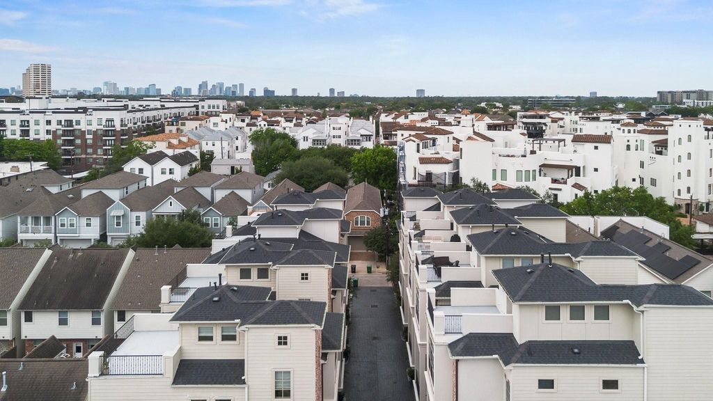 Luxury living in the heart of Rice Military! Ideally positioned between I-10 and River Oaks, this stunning 3-bedroom, 3.5 bath home offers the perfect blend of privacy, style, and convenience - just minutes from Downtown, Memorial Park and the Galleria. Nestled on a corner lot on a private drive, the home spans four levels of thoughtfully designed space. The first floor features a flexible guest suite or home office with an ensuite bath and access to a private terrace. On the second level, soaring ceilings and an open-concept layout connect the living area to a chef's kitchen outfitted with Italian Carrara marble, Thermador stainless appliances, dry bar, and a built-in wine fridge-all opening to a private balcony. The third floor hosts a spacious secondary bedroom and an expansive owner's retreat with spa-like amenities. Cap it all off with a showstopping fourth-floor rooftop deck offering unobstructed views - perfect for unforgettable entertaining. This is urban living at its finest!