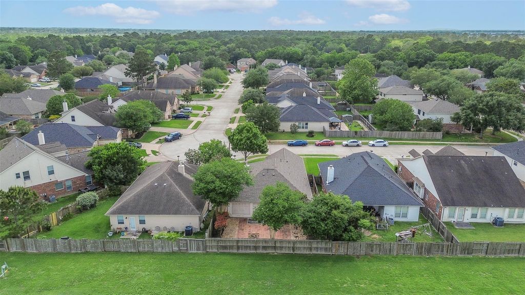 Tucked in a small, quiet neighborhood with no back neighbors, this elegant 3-bedroom home offers both privacy and charm. Built in 2005, it welcomes you with a grand entry and a stunning double-sided fireplace that adds warmth and character to multiple living spaces. The kitchen comes fully equipped—all appliances stay—making your move effortless. Thoughtful upgrades include distinguished 6" baseboards, roll-down storm shutters for added protection, and a brand-new roof installed in 2024. Conveniently located just minutes from the Hwy 646 shopping area, you’ll enjoy easy access to dining, retail, and everyday essentials. This home blends comfort, style, and peace of mind—ready for you to move in and enjoy!