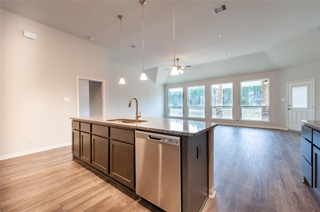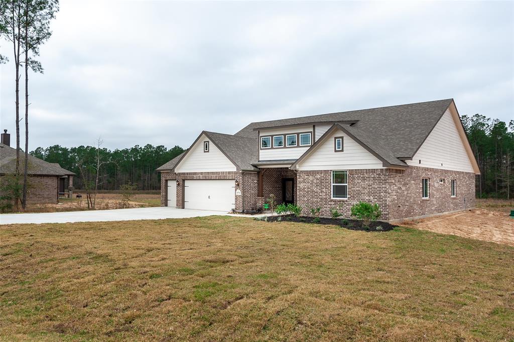Inviting front porch elevation with leaded glass mahogany front door invites you into an elegant entry & dining room with crown molding! Open floor plan with high ceilings throughout. Gourmet kitchen with plenty of cabinets and an oversized island that overlooks the family room Walk in the pantry, beautiful granite countertops and designer backsplash are just a few of the pluses. Split floor plan that offers privacy for the oversize Master retreat with lots of natural light! Master bath with walk-in shower with a seat, corner garden tub and separate his and her highboy granite vanities! A huge covered back patio in the backyard, and 3 car garage on a wooded acre of land. Where you can build a shop, store your boat, RV, trailer etc. all on your property! Conroe ISD and super low tax rate! This won't last long for a private showing today!