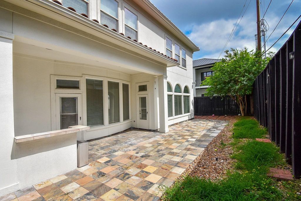 A two-story Mediterranean residence featuring 4 bedrooms and 3.5 bathrooms. The interior is finished with travertine and wood floors. The open-concept kitchen includes granite counters, a breakfast bar, stainless appliances, and a built-in desk area. Living spaces consist of both formal rooms and a family room with custom built-ins and a fireplace. A large home office includes a wall of built-in cabinets. Upstairs, an iron staircase opens to all bedrooms and two full bathrooms. The outdoor space features a summer kitchen and breakfast nook. The primary suite's bathroom includes a soaking tub, separate shower, and a small refrigerator for convenience. Conveniently located near shopping mall, restaurants, and major highways for easy access. Don't miss out on this fantastic opportunity to own a home in a prime location! Contact us to schedule a showing today.