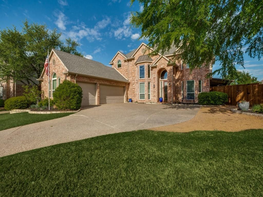 Situated on a spacious .36 acre cul-de-sac lot, this stunning home offers picturesque views of an expansive backyard, sparkling pool, & welcoming outdoor living spaces. Upon entering, the impressive two-story entrance is highlighted by a winding staircase, abundant natural light, and elegant hardwood floors. The kitchen stands out as a true centerpiece, boasting designer granite countertops, a matching slab granite backsplash, and a spacious island ideal for entertaining. The family room is equally inviting, with a sleek entertainment wall, a beautiful stone fireplace, motorized shades, and sweeping views of the generous backyard & pool. Large picture windows fill the home with natural light and provide breathtaking views. Enjoy relaxing by the sparkling swimming pool or unwind under the covered patio. The Texas-sized backyard features a diving pool with a board, & plenty of grassy play area, offering the perfect setting for both peaceful mornings and memorable gatherings. The owner's private retreat is thoughtfully designed with peaceful outdoor views, dual vanities, a soaking tub, & a walk-in closet. Both the primary suite & a guest bedroom are conveniently located on the first floor, offering easy access for families & visitors. Upstairs, three generously sized secondary bedrooms & a spacious game room provide plenty of space for relaxation & fun. Recent updates to the home include beautiful wood flooring, new windows (2024), updated HVAC boots & ducts (2025), enhanced attic insulation (2025), & fresh paint throughout. The residence also features an oversized three-car garage with epoxy floors, adding both convenience & style. Residents enjoy access to the exceptional amenities of Stonebridge Ranch, such as a beach and swim lagoon, tennis & pickleball courts, miles of scenic trails, serene lakes, & frequent community events. All these benefits are located near highly rated McKinney ISD schools, as well as convenient shopping & dining options.