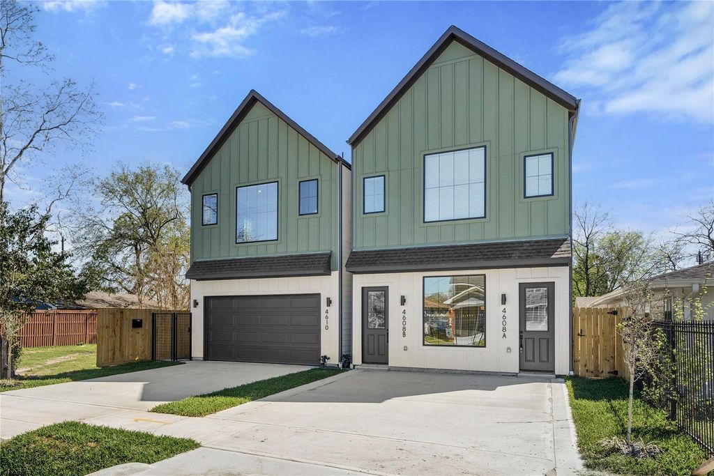 New construction duplex in Denver Harbor offering exceptional investment potential and modern urban living. Ideally located with quick access to I-10, 610, and 59, and just minutes from Downtown, EaDo, major employers, dining, and entertainment. Situated in a rapidly developing area, this property is ideal for house hacking, multi-generational living, or generating strong, consistent rental income. Both units offer 1,290 SF with 3 bedrooms, 2 bathrooms, and 11’ ceilings in living areas, featuring open-concept layouts, oversized windows, and abundant natural light. Thoughtfully designed with high-quality finishes, modern kitchens with quartz countertops, flat-panel cabinetry, and terrazzo-style tile baths. One unit also includes a private backyard w/ covered patio, and the other a balcony - perfect for indoor-outdoor living and tenant appeal. No HOA. A rare opportunity to own a versatile, income-producing property with long-term appreciation potential in a high-growth Houston market.