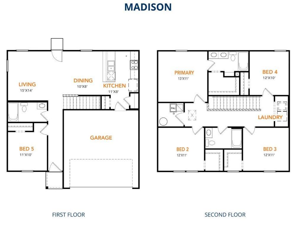 MLS# 21239416 - Built by NHC - Jul 2026 completion! ~ Model 1804-2 B1 - Madison The Madison Plan from our Liberty Series combines style and functionality in a layout that maximizes space for your family’s needs. This 2-story home features 5 bedrooms, 3 bathrooms, a 2-car garage, and 1,804 square feet of well-designed living space. As you step inside, you’ll find a main-level bedroom and a full bathroom, offering a convenient option for guests or a home office. Beyond that, the home opens to a bright and airy living area, where the family room, dining area, and open kitchen with a central island come together seamlessly to create a welcoming space for entertainment and everyday living. Stairs located in the family room lead to the upper level. Upstairs, the primary suite serves as a private retreat, complete with an ensuite bathroom. The upper level also includes three additional bedrooms, another full bathroom, and a conveniently located laundry room to simplify daily tasks.