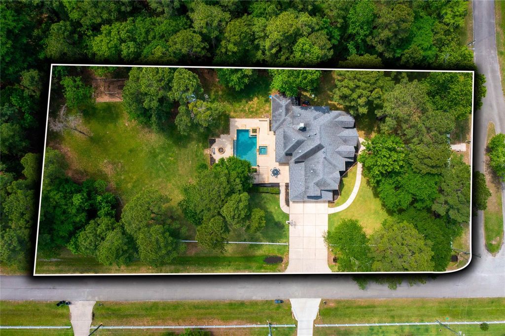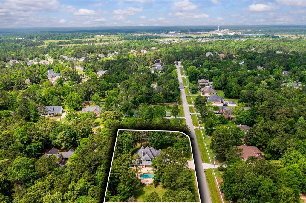 Set on an oversized lot within a gated community, this thoughtfully updated home offers space, privacy, and a seamless indoor-outdoor lifestyle. A dramatic entry opens to a light-filled study with French doors and a refined dining room. The expansive kitchen with island flows into the family room, creating a natural gathering space with views of the landscaped backyard. Outside, a heated pool with fountains, ambient lighting, and mature green space creates a private retreat designed for entertaining, play, or quiet evenings. The primary suite features a sitting area and fireplace, while upstairs offers additional bedrooms, baths, a game room, and flexible workspace. Recent updates include windows (2022), sprinkler system (2022), pool equipment (2021 and 2025), tankless water heater (2021), roof (2019), AC units (2025) and front door (2022). Residents enjoy lakes, fishing, and amenities with convenient access to The Woodlands and Hwy 249 for shopping and dining.
