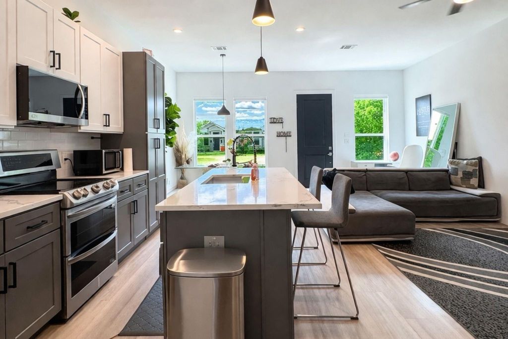 Modern duplex on oversized 7,775 SF lot with large backyard in a prime Houston location. Each unit offers 3 spacious bedrooms, 2 full bathrooms, open-concept layout with abundant natural light, 10’ ceilings, and 8 ft doors throughout. The stylish kitchen features an oversized island with built-in sink, stainless steel appliances, and 42” cabinets with ample storage. The owner’s retreat includes a spa-like en suite bath, walk-in closet, and elegant French doors. Luxury vinyl plank flooring throughout—no carpet. Bathrooms upgraded with sleek glass sliding doors. Perfect for investors, short-term rental, or house hacking. Unit B is tenant-occupied, providing instant cash flow. Conveniently located near Downtown Houston, Texas Medical Center, NRG Stadium, Museum District, George R. Brown, University of Houston, and TSU.