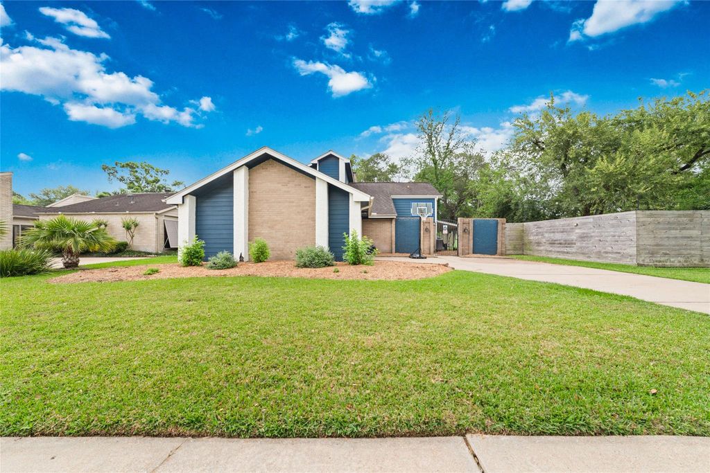 Rare opportunity in Brook Forest with direct park and pool access from your backyard. Welcome to this beautifully updated home in one of the most desirable neighborhoods in Clear Lake. The home features a spacious layout with soaring ceilings and a warm living area that opens to a covered patio overlooking a private greenbelt, no back neighbors. The kitchen has been updated with quartz countertops, modern cabinetry, and stainless steel appliances. The first floor includes two bedrooms and two full bathrooms, including the primary suite with an updated bath. Upstairs offers a large gameroom with wet bar, plus an additional bedroom or study and a half bath, ideal for entertaining or working from home. The backyard features gated access to the park, trails, and community pool. Conveniently located near NASA, shopping, dining, and top-rated schools, this home offers a great combination of layout, updates, and location in Clear Lake.