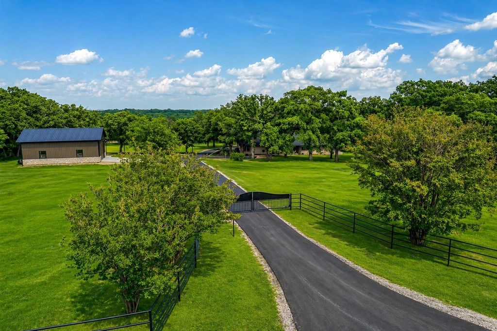 Absolutely stunning ranch-style estate set on 20+- picturesque, AG-exempt acres in highly sought-after Grandview ISD, where peaceful seclusion meets storybook charm. Tucked behind a gated entry and framed by mature oak trees, this meticulously maintained property features pipe fencing and cross-fencing—ideal for horses and livestock with rich, usable soil and a seasonal creek for horses. From the moment you arrive, the pride of ownership and attention to detail are undeniable. The heart of the home is a breathtaking, thoughtfully designed kitchen that blends style and function, perfect for everyday living and entertaining alike. Step outside to a stunning back patio, offering the perfect setting for morning coffee or evening sunsets, with plenty of space to build your dream pool. The property also boasts a brand-new 24x36 metal shop complete with plumbing, electricity, a dedicated office space, and covered parking, along with a newly added metal stable for livestock or equipment. Enjoy the convenience of a newly installed asphalt driveway, and an oversized garage featuring an insulated door and sleek epoxy flooring. A charming chicken coop can remain, adding to the authentic country lifestyle this property offers. With room to roam, grow, and create your dream ranch retreat, this one-of-a-kind property perfectly blends luxury, functionality, and tranquility—an absolute must-see.