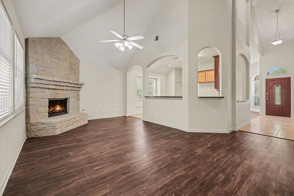 Move-in ready three-bedroom, two-bathroom home in the desirable Summer Wood neighborhood. This residence features an inviting open-concept layout highlighted by soaring ceilings in the living room, creating an airy and expansive feel centered around a cozy fireplace. The floor plan flows naturally into the updated kitchen, which boasts elegant granite countertops, modern stainless steel appliances, and ample workspace for the home chef. The primary suite serves as a private ground-floor retreat, complete with a large walk-in closet for extensive storage. Upstairs, you will find a versatile flex space—perfect for a secondary living area, media room, or home office—situated between two well-proportioned secondary bedrooms and a shared full bathroom.Minutes from I-45, fine dining, Willis schools, and shopping. Schedule your showing today!