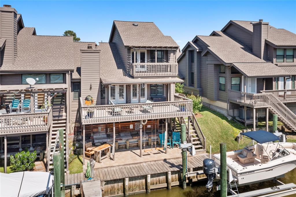 Waterfront charm in sought-after Bal Harbour! This meticulously maintained townhouse offers 50’ of water frontage with a 10,000lb boat lift—perfect for boating enthusiasts. Inside, custom door casings and solid doors add a high-end touch, while bamboo flooring throughout offers beauty and exceptional durability. The upgraded kitchen features elegant cabinetry with glass-front uppers that match the detailed casings. Enjoy outdoor living with balconies off both the family room and the spacious primary bedroom. The loft offers flexibility for a great bonus sleeping area or office. Down by the water, a man cave fish camp awaits—ideal for relaxing after a day on the bay. A gas line has already been run to the property—just add a meter and you're generator-ready. A/C replaced in 2024. This home offers the perfect blend of comfort, character, and coastal lifestyle. Yard maintained by the HOA, so you can spend more time enjoying the views.