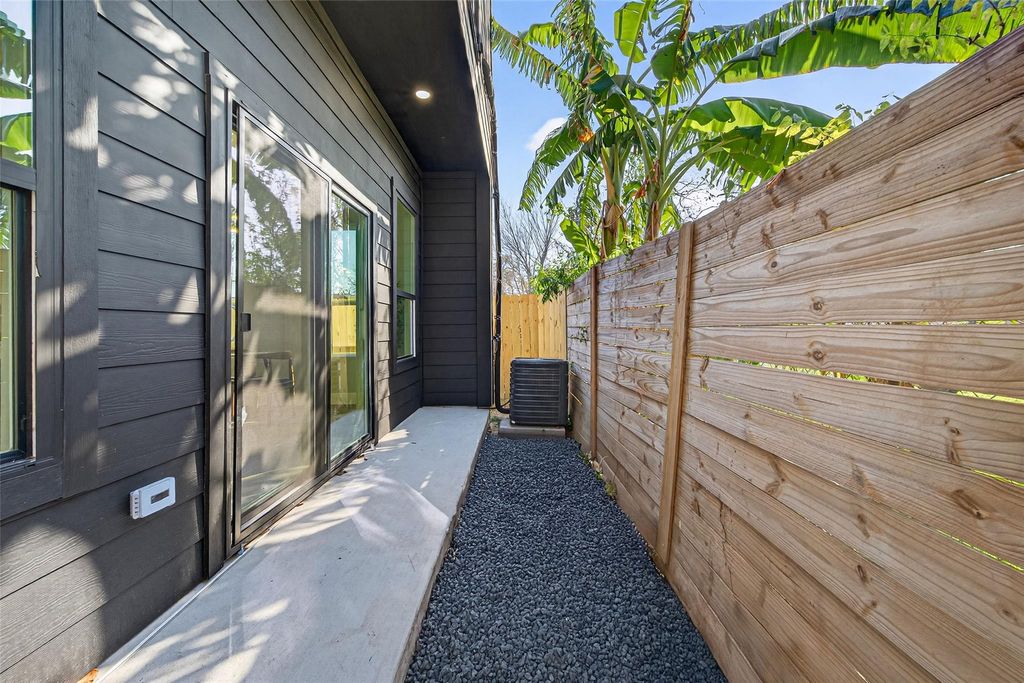 Discover refined new construction by Vision Development 1887 in the heart of Independence Heights. This architecturally striking single-family residence features 3 bedrooms, 2.5 baths, and a spacious 2-car garage, with all bedrooms privately situated on the second floor. Curated finishes include a dramatic eight-foot entry door, soaring 10-foot ceilings, a 60-inch electric fireplace, Samsung gas appliances, soft-close cabinetry, and a serene primary retreat complete with tray ceiling, expanded walk-in closet, spa-inspired soaking tub, and a private balcony. A second balcony extends from an additional bedroom, offering elevated outdoor living. Upgrades continue with a utility room sink and a hard-wired smart security system. Enjoy seamless indoor-outdoor living with a covered porch, fenced yard, and no HOA. Ideally located just minutes from Downtown Houston, The Heights, and The Galleria with effortless access to 610 at Yale.