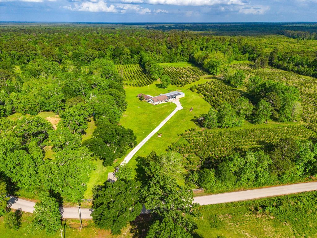 The 34+/- Moss Hill Estate sits off a quiet county road bordered by over a thousand acres of timber including a shared boundary with a unit of The Big Thicket National Preserve known for providing excellent neighboring wildlife habitat. Adorned with a well built 2,652 SF house, a 2,100 SF shop, several ponds, and a manicured mix of planted pines, and hardwoods; The Moss Hill Estate is a fully improved turnkey property with proximity to Houston, Beaumont and Mont Belvieu. In addition the property also boasts very reasonable property taxes and utility costs. IMPROVEMENTS: The property is improved with a 2,652 SF custom home built in 2010, and an attached 900SF Mueller metal shop building built in 2012. The house includes 4 beds, 3 baths, an open concept kitchen, as well as 2 large living rooms. Outside of the house is a covered carport, and a rooftop mounted solar system that will save a new owner a significant amount of money annually in power costs. TAXES: Timber exemption.
