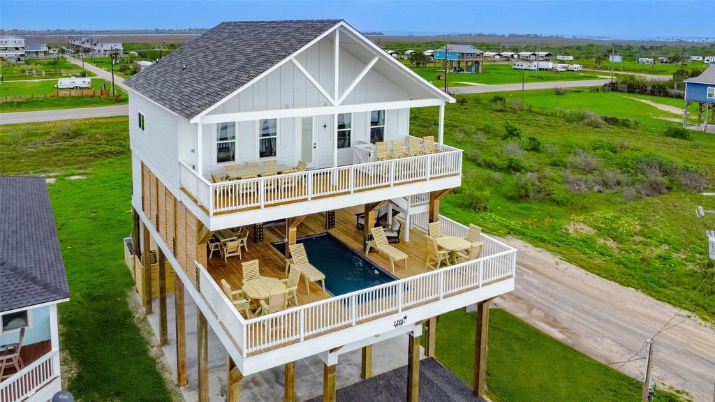 AMAZING VIEWS - STEPS FROM THE BEACH! Escape to paradise in your private pool & jacuzzi overlooking the sand with 3 bedrooms, 3 full bathrooms, and an additional loft for flexible living or extra guest space,1,224 square feet of beautifully designed interior space, plus a 281-square-foot loft, perfect for a home office, media room, or extra sleeping area.The open-concept living area boasts vaulted ceilings, creating an airy, spacious feel, and opens onto a covered front porch where you can enjoy stunning ocean views.State-of-the-art kitchen with butcher block countertops & cabinet space reaching to the ceiling. Mid-deck lounge area with an outdoor kitchen and half bath perfect for entertaining. Private pool and jacuzzi for ultimate relaxation. Garage and outdoor shower for added convenience Short-term rentals and vacation rentals allowed, ideal for investors or second-home buyers This turnkey villa combines modern comfort with beachside luxury. Must see! Schedule a showing today!