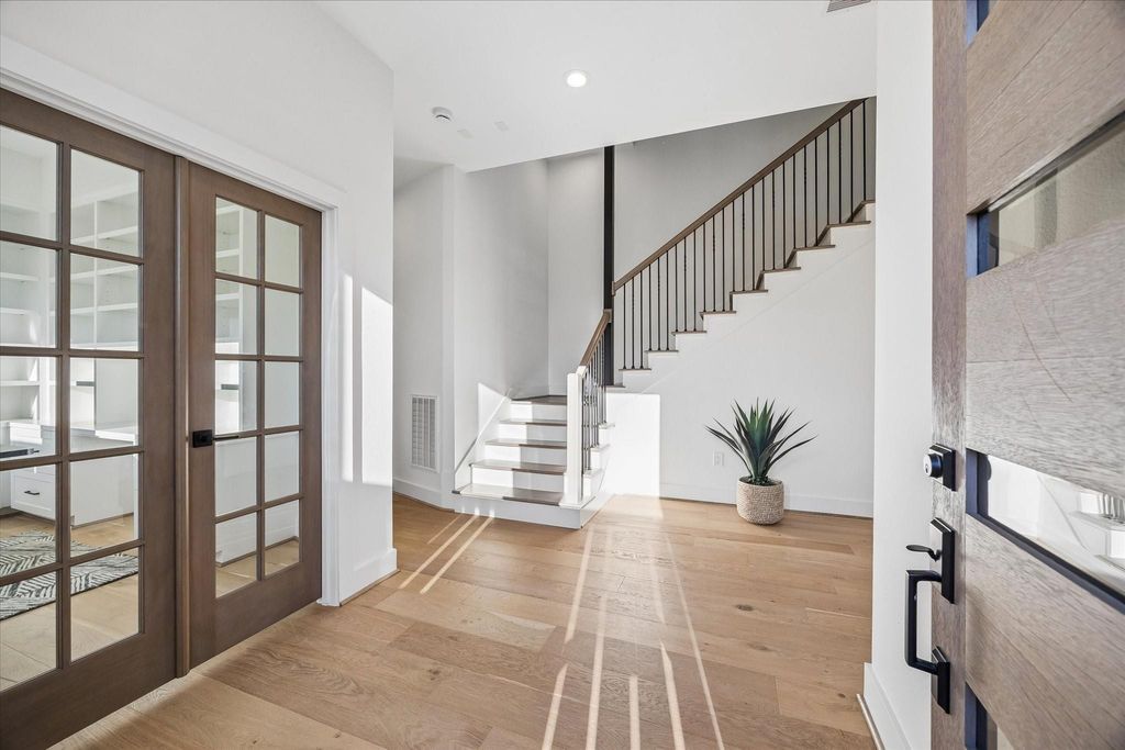 Modern design, natural light, and thoughtful execution set this Cottage Grove residence apart. Spanning almost 3400 square feet, this three-story home offers 3 bedrooms, 3.5 baths, and a flexible layout with a first-floor bedroom, office, and mudroom, plus an additional office on the second level. A dramatic multi-level skylight anchors the home, flooding the interiors with natural light and highlighting custom cabinetry, elevated finishes, and clean architectural lines throughout. The open-concept second-floor living space is designed for both entertaining and daily living, seamlessly connecting kitchen, dining, and living areas. The primary suite features dual walk-in closets and a spacious, well-appointed bath. Complete with a private driveway, fenced yard, and attached two-car garage, this home offers a rare combination of design, functionality, and Inner Loop convenience with close proximity to trails, parks, and dining.