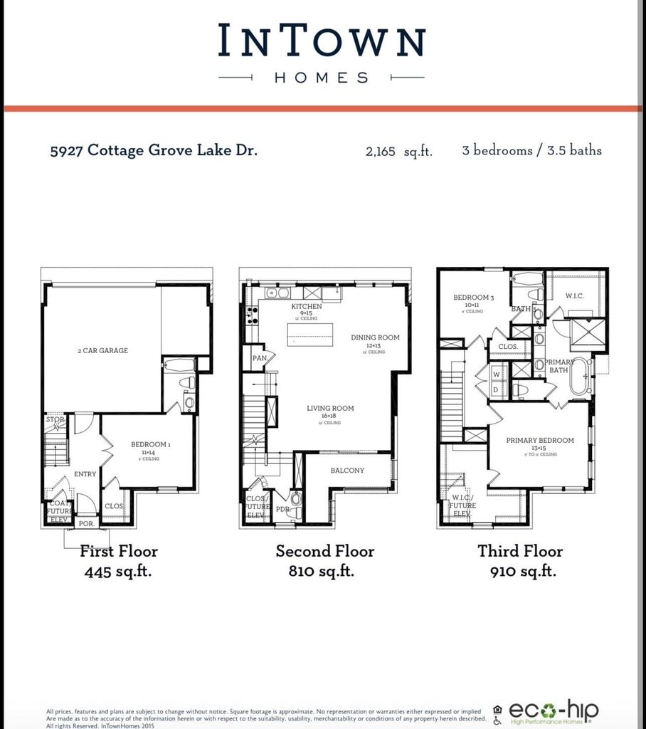 Beautiful freestanding romantic painted white brick with handsome shutters freestanding home with spacious fenced in front yard and unique wider lot (not as narrow rectangular). Gorgeous modern warmth greige cabinets with gold hardware and white oak wood floors. Join our most coveted community with great central location and amazing amenities including a sparkling community LAKE w/ fountains, walking trails, 2 dog parks, and a community pool in the gated community of Cottage Grove Lake! Soaring 12ft ceilings in open living room leads to spacious oversized L shaped balcony through epic 10ft tall glass sliding trifold doors. Kitchen has luxe SS Bosch appliances. Primary suite has 5 star spa-like primary bath that features real imperial white marble countertop and freestanding tub, many windows for natural light. Primary walk in closet is a homeowner's dream with custom wood furniture grade finishes and desk/vanity for home office. Must see in person!