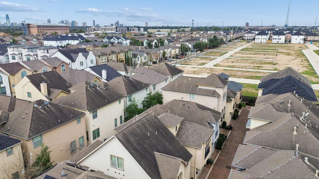 Located in the gated community in the heart of Cottage Grove, this stylish freestanding stucco home offers modern living with an in-town location between the Galleria and Downtown. Built in 2019, the two-story floor plan is filled with natural light and showcases high ceilings, expansive windows, plantation shutters, granite countertops, and stained bamboo floors. The first level includes two secondary bedrooms, a full bath, and one bedroom with direct access to the fenced patio—perfect for indoor-outdoor living. Upstairs, the open living, dining, and kitchen layout creates an ideal entertaining space, while the private primary suite features a spa-inspired bath with a freestanding soaking tub and oversized glass shower. Impeccably maintained and conveniently located near the White Oak Bayou Trail, dining, and retail. Virtually staged to show you what is possible in this adorable home!!