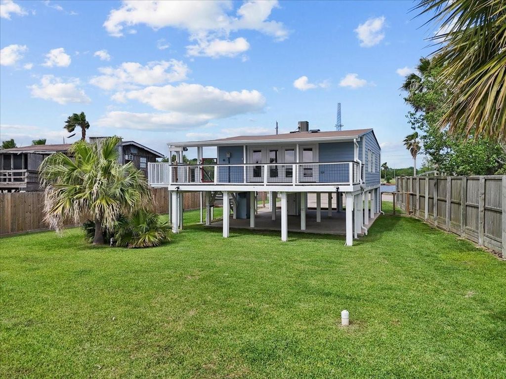 Welcome to this super cute cottage at 5030 Scenic Drive in Dickinson! This updated home has views for days on wide open bayou frontage! Home has updated laminate flooring throughout, gorgeous kitchen cabinetry, quartz counters and stainless steel appliances! Living area over looks double doors that go out to your covered patio/deck area. Full bath has beautiful vanity and walk-in shower. There is another half bath for your guests. Home also has one formal bedroom and another room that is being used as a bedroom or could be used as an office/study. Roof was updated in 2024! Large double driveway takes you to tons of space underneath home! Park the RV with ease and hook up to easy accessible 50 amp plug. Gated and fully fenced in 2025, you can let the kids/pets play! Seller installed a convenient cargo lift in 2025! No words can describe the views you have from home on this perfect spot on the bayou! NO HOA and low tax rate makes this a MUST SEE!