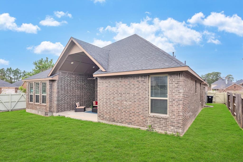 Fully Furnished and equipped lease. Available for a three month lease.One story with 4 bedrooms, 3 and a half baths plus study! First bedroom with en suite bathroom and walk in closet is situated at the front of the house . Study is private with beautiful French doors and views to the front (currently furnished as a bedroom), main living area is open and ample, big island kitchen with SS appliances , wall mounted TV and beautiful furniture. Two bedrooms sharing a bathroom are situated on the back . Split plan with primary overlooking backyard, en suite bathroom with double sinks, tub & separated shower. Huge walk in closet. Covered back patio and two car garage with space for storage. Harpers Preserve offers beautiful walk pathways, green spaces, pools and rec center. HEB, CVS, restaurants and elementary school are situated right outside Harpers preserve entrance. All Rooms sizes are approximate , please verify.