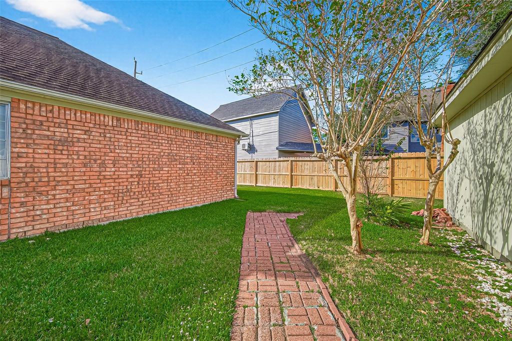 Original family owned,well-maintained 4-bedroom, 2.5-bath single-story Perry Home on a quiet mature cul-de-sac street. Features include bamboo flooring, high ceilings, crown molding, both formals. A spacious kitchen with an island, stainless steel appliances, and custom wood cabinets. Large den with built-ins and gas fireplace. Oversized primary bedroom and bath with separate walk in closets. Brick on all four sides and a rare 3-car detached garage with extra storage add exceptional value. Conveniently an easy commute to the Medical Center, Downtown, shopping and restaurants. Just waiting for you to put your personal stamp on this fabulous property.
