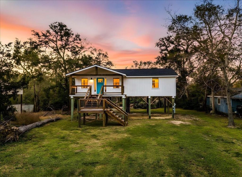 Welcome to this adorable fully furnished 2-bedroom, 1-bathroom home nestled on Chocolate Bayou. Completely remodeled from top to bottom, this charming retreat blends modern updates with cozy country living. Step inside to discover a fully updated kitchen featuring beautiful quartz countertops, stylish cabinetry, and modern appliances. Washer, dryer and refrigerator included Outside, enjoy your brand-new front patio — an ideal spot for morning coffee, evening sunsets, or simply relaxing and taking in the bayou breeze. For water lovers and anglers, the private fishing dock offers direct access to Chocolate Bayou, making it easy to cast a line anytime. Additional features include an RV plug conveniently located under the house, providing flexibility for guests, travel lovers, or extra storage needs. Whether you're looking for a weekend getaway, a cozy full-time residence, or an income-producing property, this beautifully remodeled bayou home is ready to welcome you