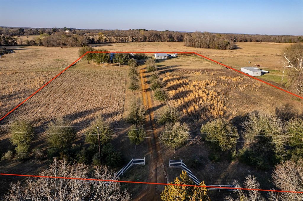 Turnkey East Texas ranchette on 4 +/- acres featuring a 3,600 sqft custom home, versatile shop with apartment, and quality improvements throughout. Property is part of a larger offering, with up to 83 +/- acres available. The energy-efficient main home offers a spacious primary suite with private bath, two guest bedrooms (designed for wardrobes in lieu of closets), hall bath, and two additional flex rooms ideal for office or hobbies. Upstairs includes two large media/game rooms and insulated attic/mechanical/storage area. Enjoy wide front and back porches plus a 20x30 covered pavilion. The shop includes a climate-controlled room with full bath and kitchenette, separate septic and water heater, two roll-up doors, lean-to, 220V power, and RV hookup. An auxiliary buildings has been used for storage and could be converted to an office or hobby shed. A beautiful homestead or weekend retreat within easy reach of Dallas–Fort Worth.
