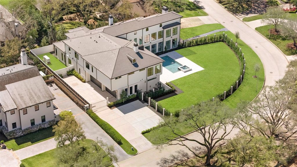 Exceptional opportunity to own spectacular new construction on a 25,000+ (Survey) sq ft corner homesite in prestigious Tanglewood, built by acclaimed luxury builder Stacey Fine Homes. This impressive residence offers 11,300+ sq ft with 6 bedrooms, 7 full baths, and 3 half baths, designed for both grand entertaining and comfortable living. A dramatic open floor plan features expansive living spaces filled with natural light, including a stunning main living room flowing into an elegant sitting lounge with bar and temperature-controlled wine room. Formal dining connects to a well-appointed butler’s pantry and chef’s kitchen with Thermador appliances, oversized island with breakfast bar, and breakfast area. The indoor-outdoor living pavilion features a wet bar, outdoor kitchen with barbecue, fireplace, and resort-style pool (approx. 32x17). Additional amenities include elevator, dual staircases, whole-house generator, four gas-log fireplaces, and oversized 4-car garage. All per Seller