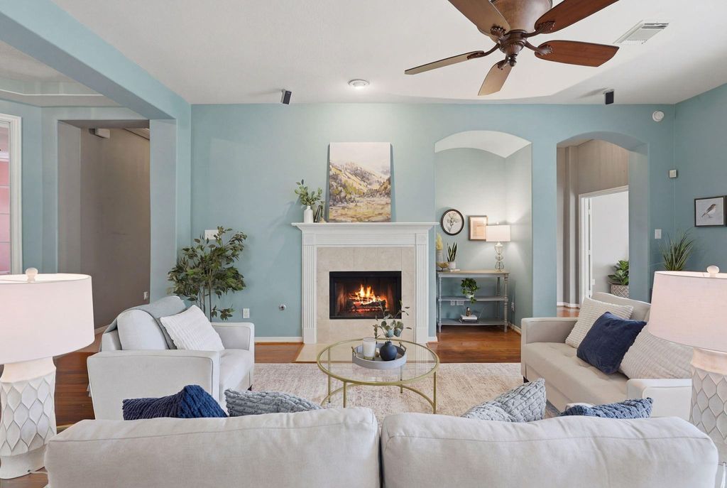 ONE STORY | 4 BEDROOMS + OFFICE | GATED COMMUNITY | AC 2024 | TANKLESS WATER HEATER Spacious home tucked inside a gated community in the heart of Tomball. Open, functional layout filled with natural light, high ceilings, crown molding, and tray ceilings throughout. Flexible floor plan with 4 bedrooms PLUS a dedicated office. Kitchen offers abundant cabinet and counter space, opening to the living area with a cozy gas fireplace, perfect for everyday living or entertaining. Private primary suite features an updated bath with dual sinks, oversized shower, and walk-in closet. Beautifully landscaped yard creates a peaceful setting—enjoy watching birds among blooming plants and flowers. Resort-style community amenities include a pool, clubhouse, basketball & tennis courts, parks, fitness room, and more. Prime location with easy access to 249 and 99. NO FLOODING PER SELLER.