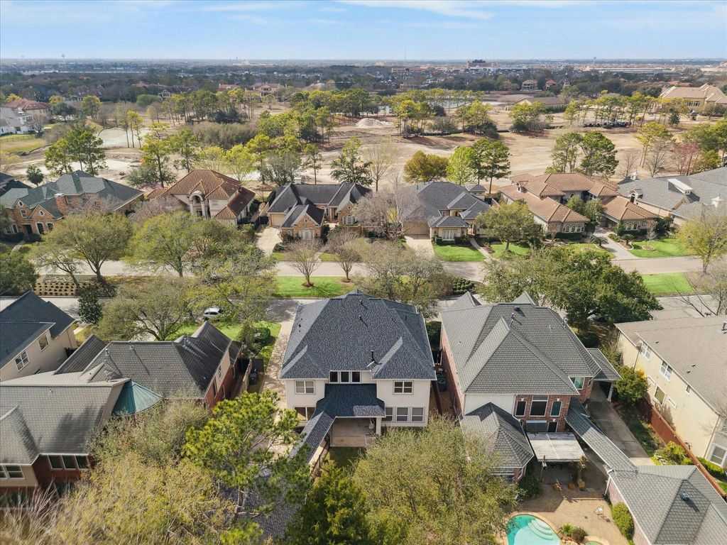 Welcome to an exceptional French Country Modern Residence in the prestigious, guard-gated Royal Oaks golf course community. Perfectly situated on a premium private lot, this 4-bedroom, 3.5-bath home embodies elegance & refined living. Open layout showcases soaring ceilings, sophisticated neutral palette, French wood flooring, & abundant natural light flowing through the gourmet kitchen, breakfast area, & expansive living spaces—all overlooking the expansive private backyard. The main level features a private study, formal dining, & a luxurious primary suite w/ a spa-inspired bath, soaking tub, walk-in shower, & quartz finishes—creating a serene first-floor retreat. Designed for comfort & entertaining, the 2nd level offers a spacious game room & generously sized secondary bedrooms. Outdoor living is enhanced by a covered veranda & vast greens. Delivers an elevated lifestyle in one of Houston’s most distinguished golf-course enclaves. A seamless blend of sophistication & modern comfort.