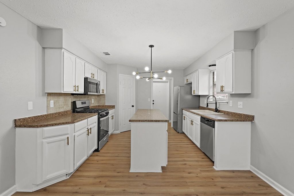 Beautiful 4 bed, 2 bath home in a charming neighborhood - move in ready! Carpet in all the bedrooms, New Hardy plank flooring in the living, dining rooms and in the kitchen. Open floor plan. Modern gray paint and flooring with eye catching fixtures throughout the main areas. Kitchen has an island and stainless steel appliances. Primary bedroom and bathroom are generously sized. Backyard is fenced! Great location - close to Hwy 6, Westpark Tollway and Beltway 8.