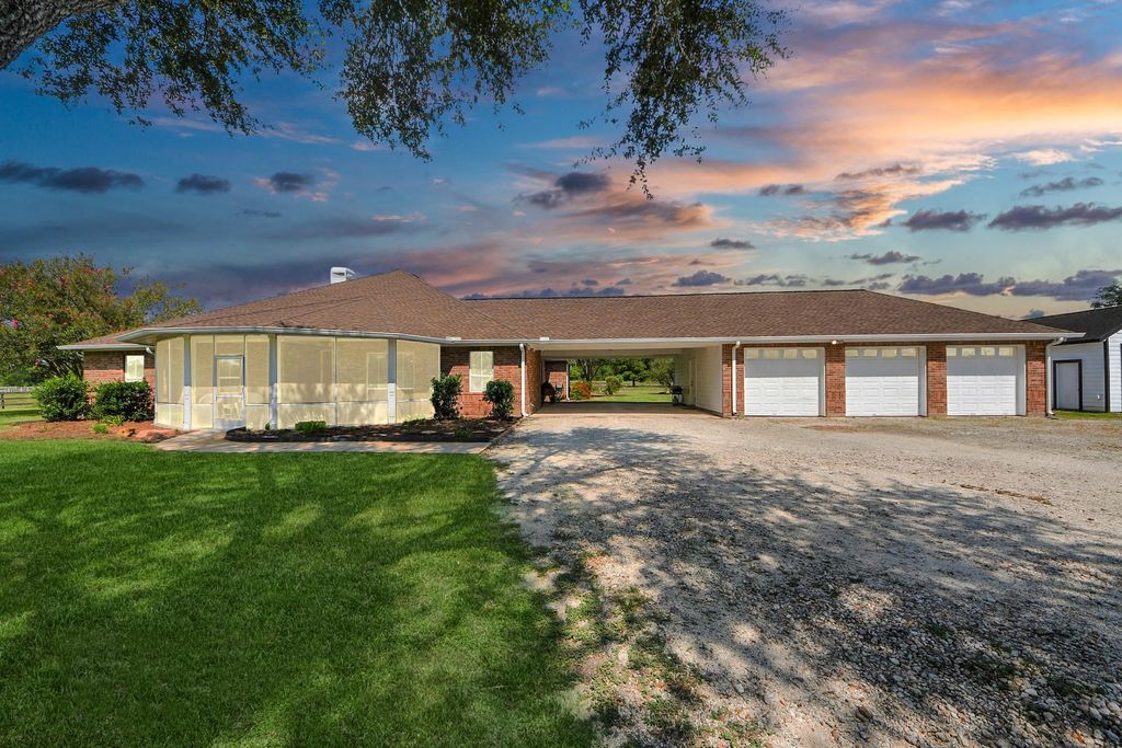 Enjoy the serenity of country living in this rare find! GATED entrance leads you to a CUSTOM ONE-STORY home w/ 3 bedrooms, 2.5 baths, 3 car garage situated on 5 ACRES wi/ a private POND & ISLAND- perfect for fishing or a picnic spot. 3,329 sq ft of living space w/high ceilings, rich hardwood floors, crown molding & more! Cozy fireplace w/ built-ins in the Great Room. Custom designed kitchen features a sprawling 13 ft granite island, ample storage & ss appliances. Retreat in the spacious primary suite w/a grand ensuite featuring a soaking tub, oversized shower, & walk-in closet. UPGRADES- 2024 roof, tankless water heater, water softener, RV charger & more! Unwind on the screened front & back porches to enjoy serene views of beautifully landscaped green space & exotic birds. Country living is perfected with an outbuilding, dog grooming studio, & is fully fenced for horses. A great place to call home blending modern upgrades with the timeless charm of rural life. Schedule a showing today!